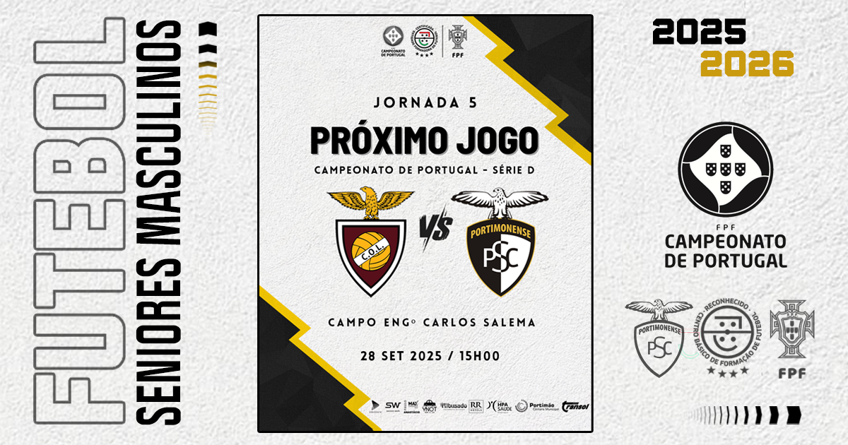 A equipa sénior do Portimonense desloca-se este domingo, 28 de setembro, até Lisboa para defrontar o Clube Oriental de Lisboa, em partida referente à 5.ª jornada da Série D da 1.ª Fase do Campeonato de Portugal. O jogo terá lugar no Campo Eng.º Carlos Salema, com início marcado para as 15h00.